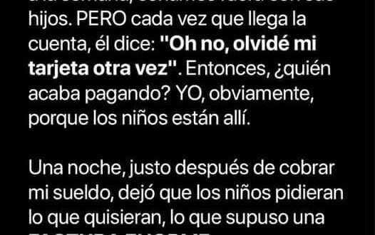 Cada vez que su pareja se olvidaba de la tarjeta, ella se veía obligada a pagar la cuenta. Al principio, no le molestaba hacerlo, pero con el tiempo comenzó a sentir que la situación la estaba dejando sin dinero, especialmente porque ya había cubierto varias cenas durante el mes anterior.